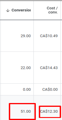 Month 1: 51 conversions @ CA$12.30 cost/conv