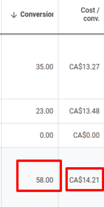 Month 2: 58 conversions @ CA$14.21 cost/conv